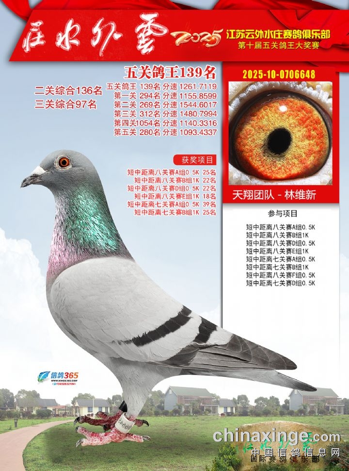 2025年云外水庄多关鸽王大奖赛491-500名