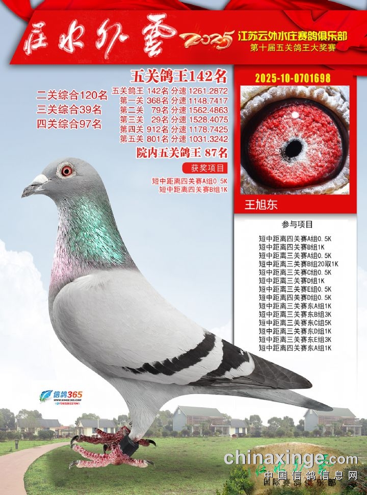 2025年云外水庄多关鸽王大奖赛491-500名