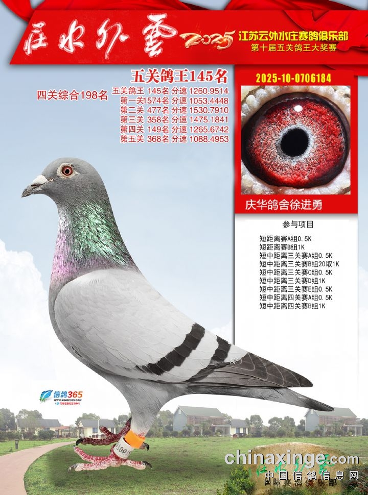 2025年云外水庄多关鸽王大奖赛141-150名