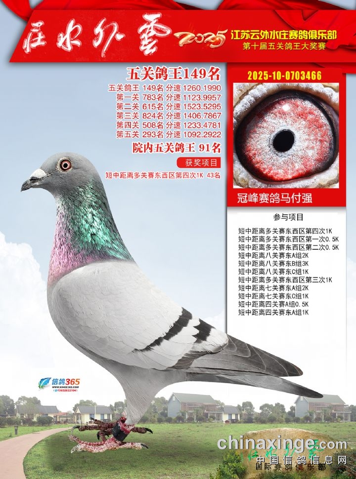 2025年云外水庄多关鸽王大奖赛461-470名