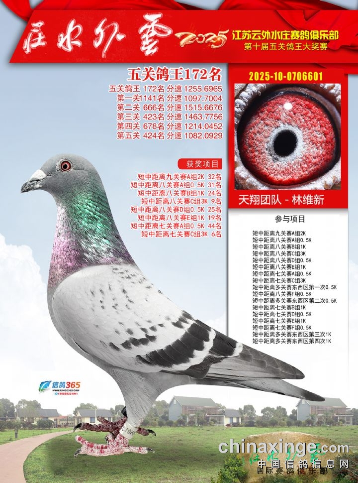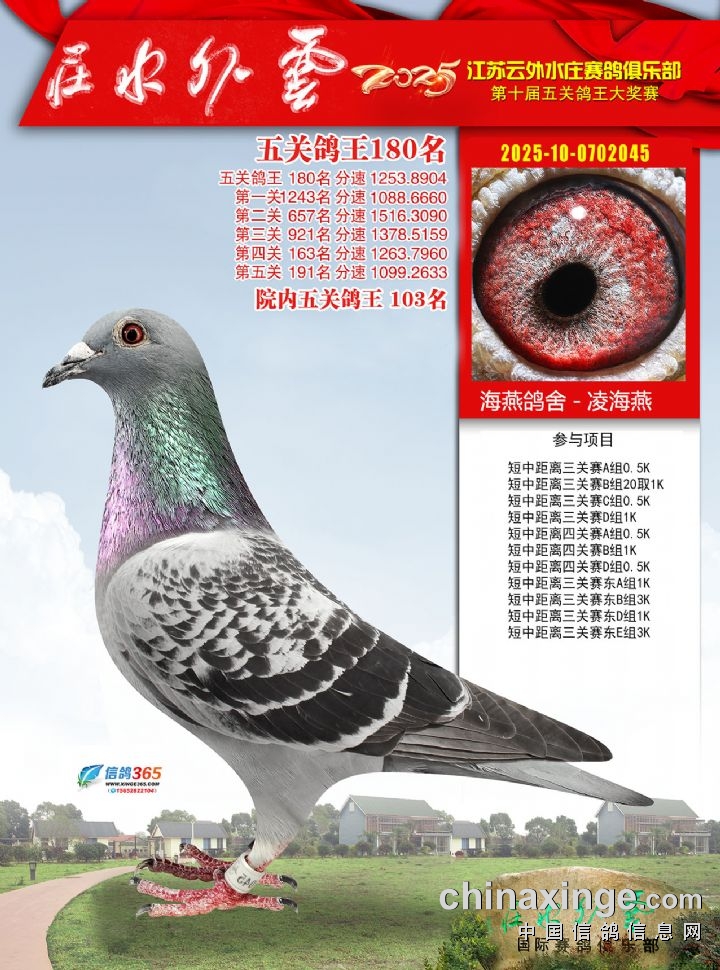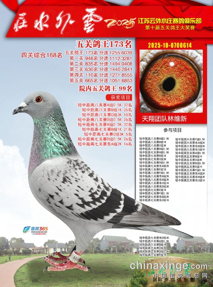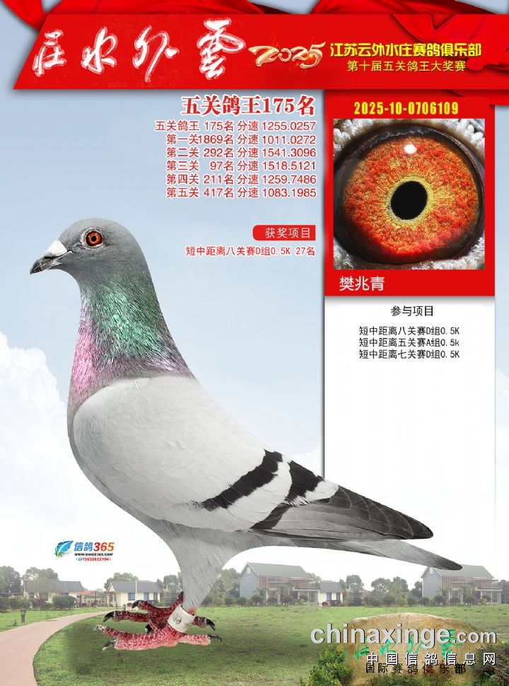 2025年云外水庄多关鸽王大奖赛171-180名