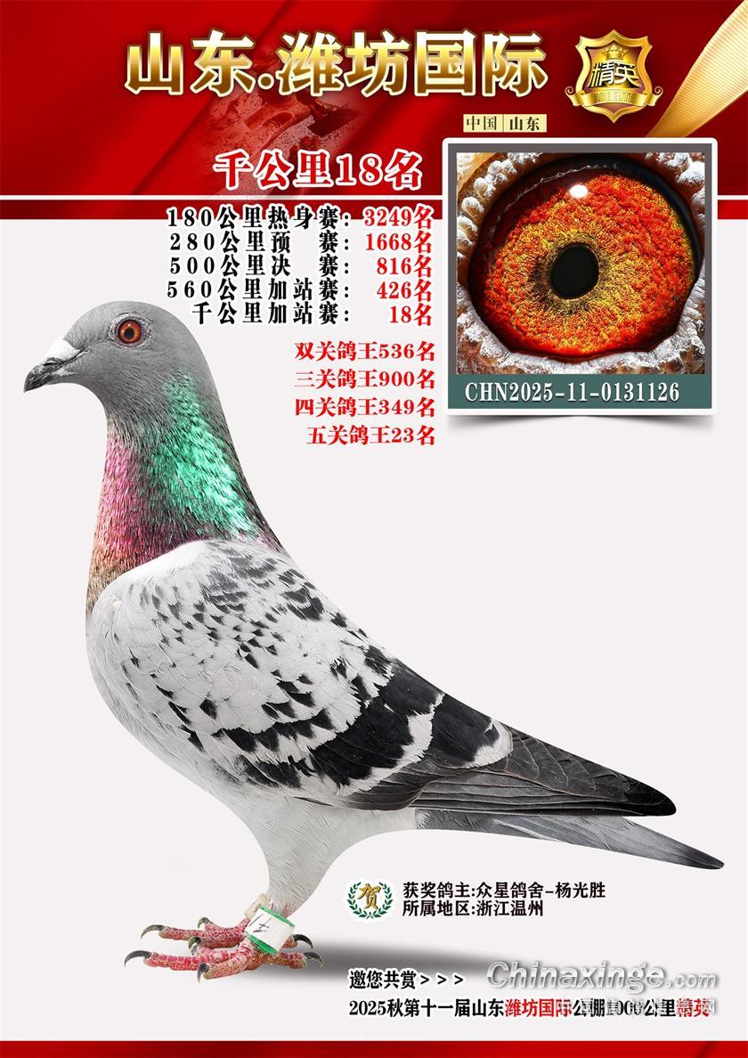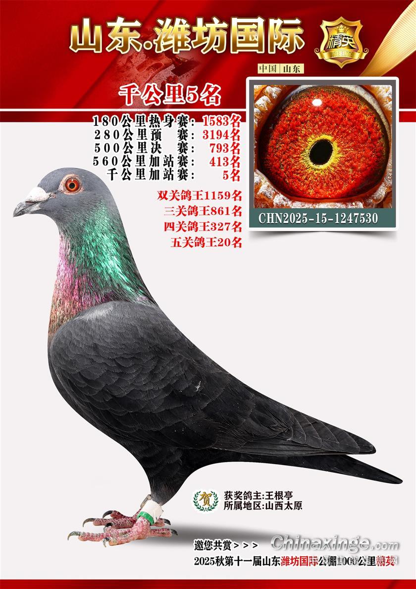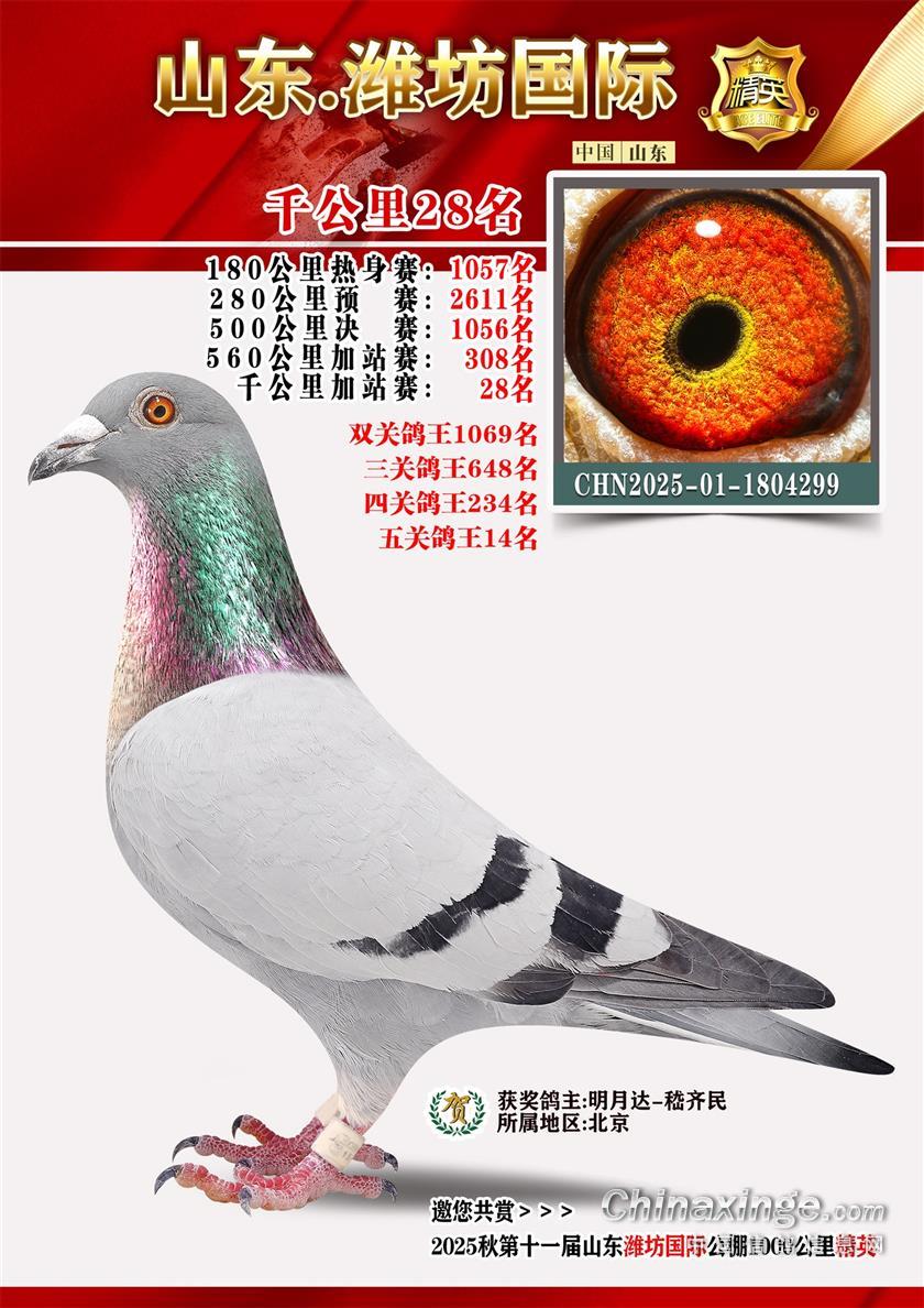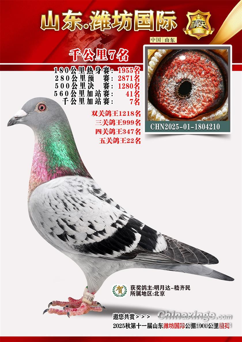 山东潍坊国际赛鸽公棚2025年王者千公里挑战赛获奖鸽照片