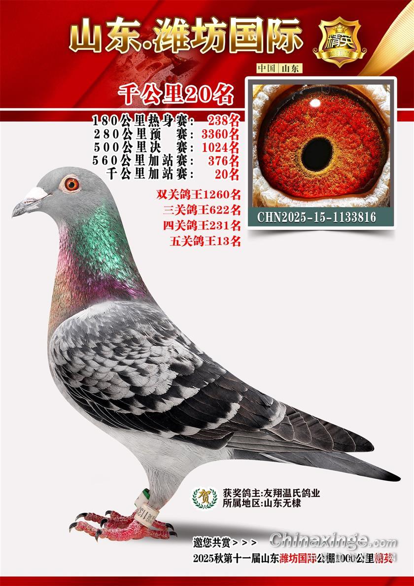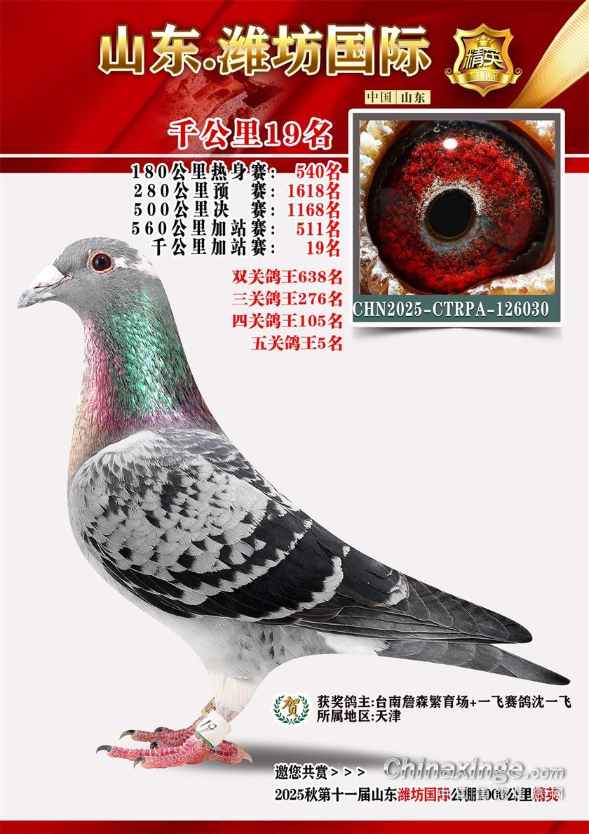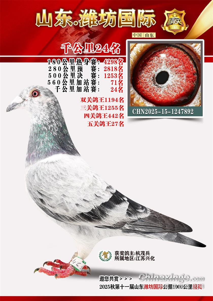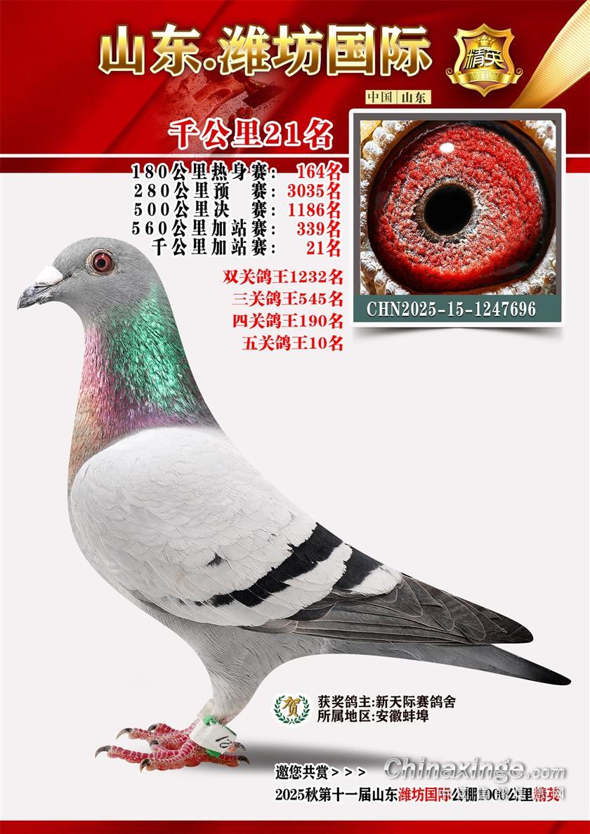 山东潍坊国际赛鸽公棚2025年王者千公里挑战赛获奖鸽照片