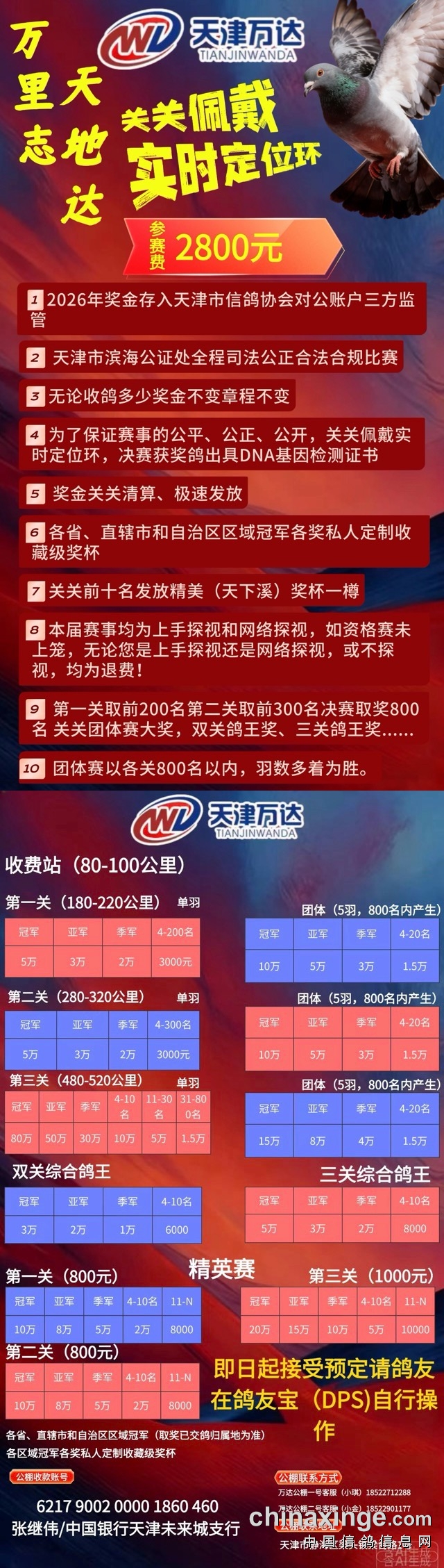 天津万达赛鸽竞技中心2026年秋季竞赛规程(简版)