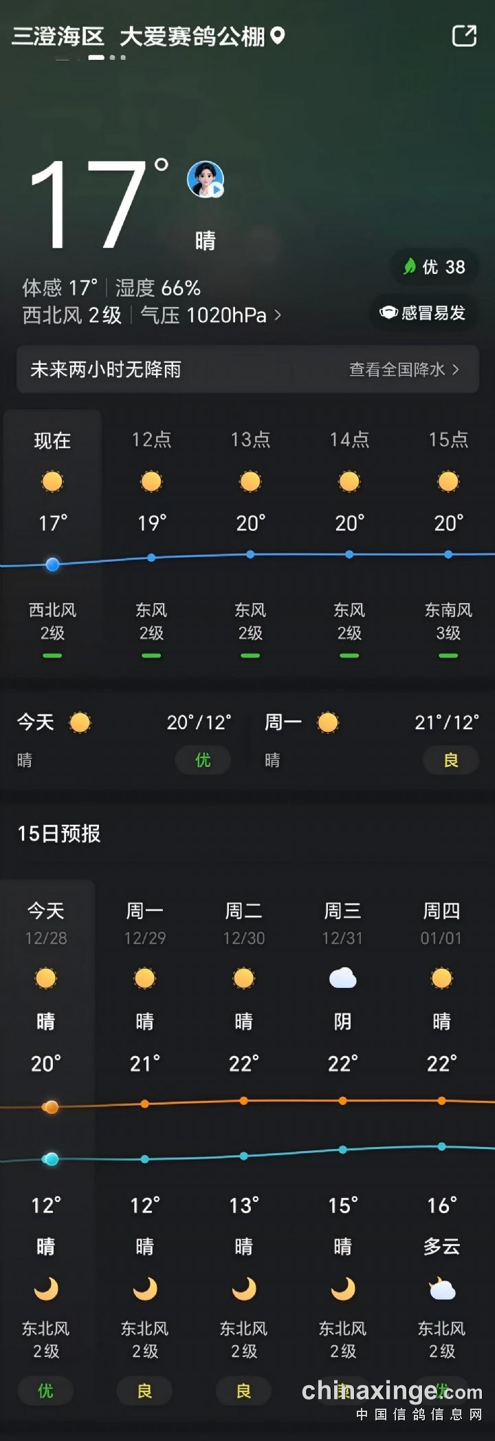 汕头市澄海区东里大爱信鸽公棚(第九届)第八站40公里资格站训放定于2025年12月28号晚集鸽,29号早上开笼!如遇恶劣天气改期另行通知。本次归巢有短信通知,有归巢数据链接,数据链接网址到时上传至网站,欢迎大家关注转发。感谢大家的支持与信任。