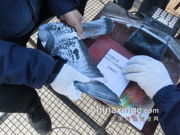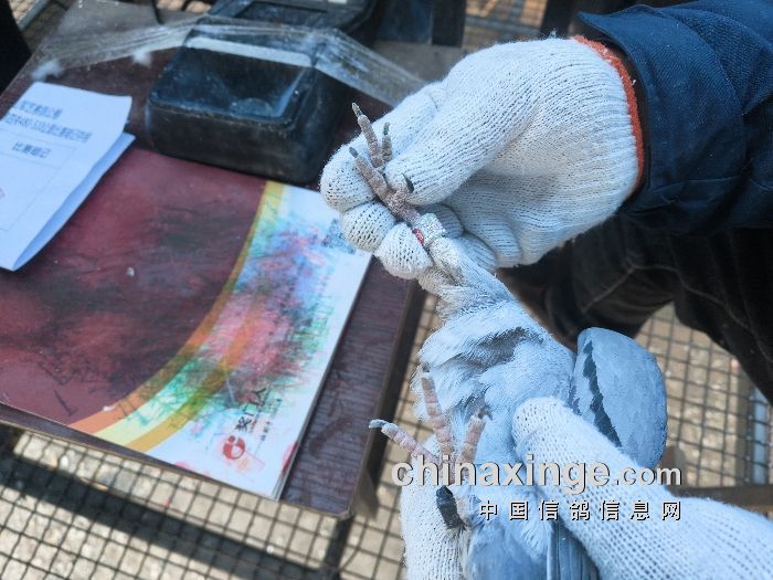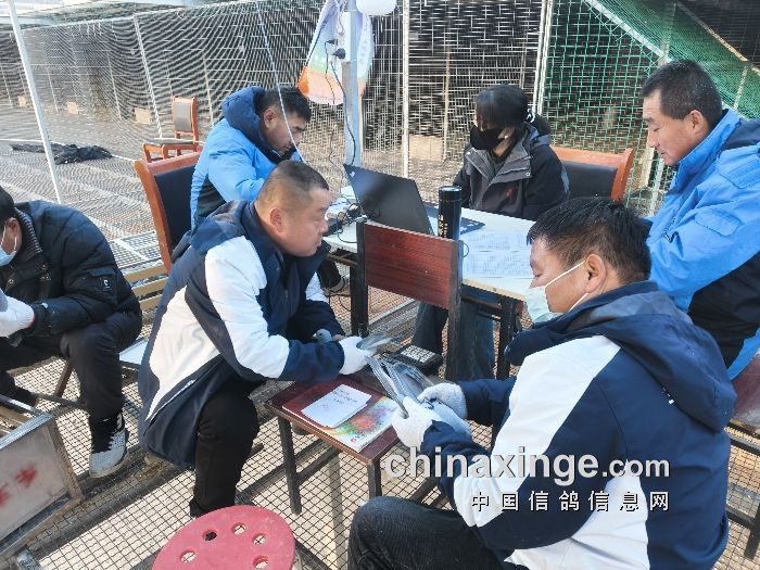 宝鸡市信鸽协会裁判组对获奖鸽逐羽查验