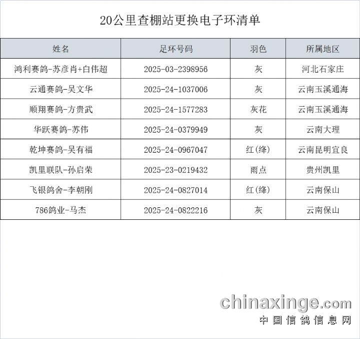 云南玉活(春棚):20公里查棚站更换电子环清单