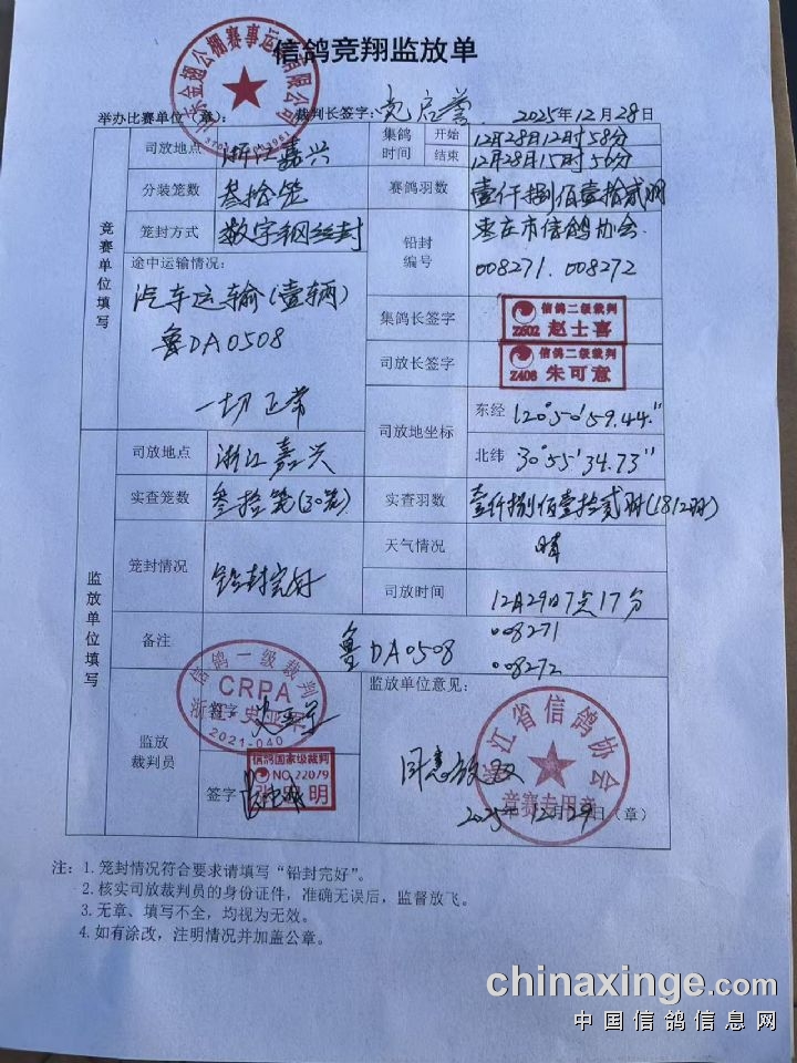 金翅天禧(大秋棚)2025年第三关决赛监放单