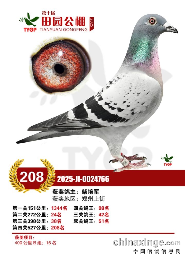 郑州田园公棚决赛获奖鸽照片196-210名