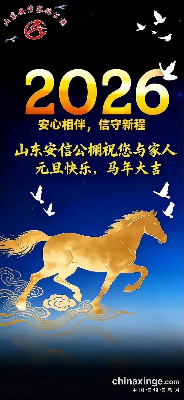 山东安信公棚恭祝全国鸽友2026年元旦快乐,马年大吉!