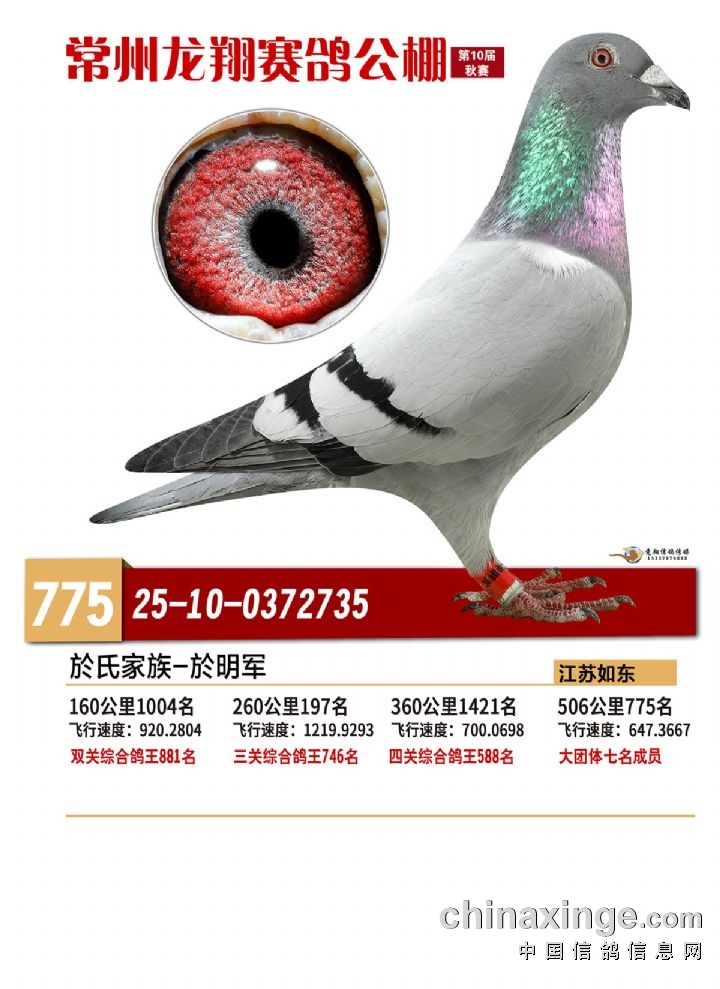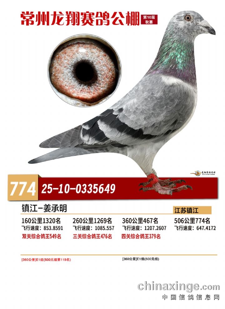 常州龙翔:2025年决赛获奖鸽靓照 771-775名