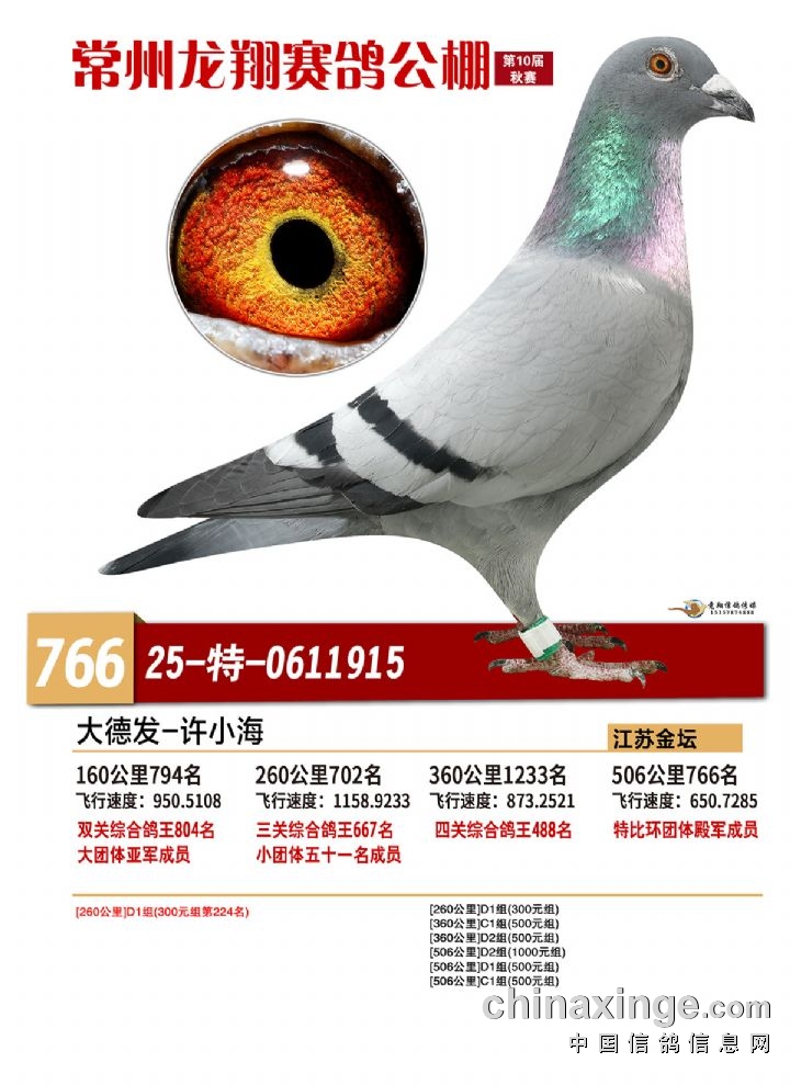 常州龙翔:2025年决赛获奖鸽靓照 766-770名