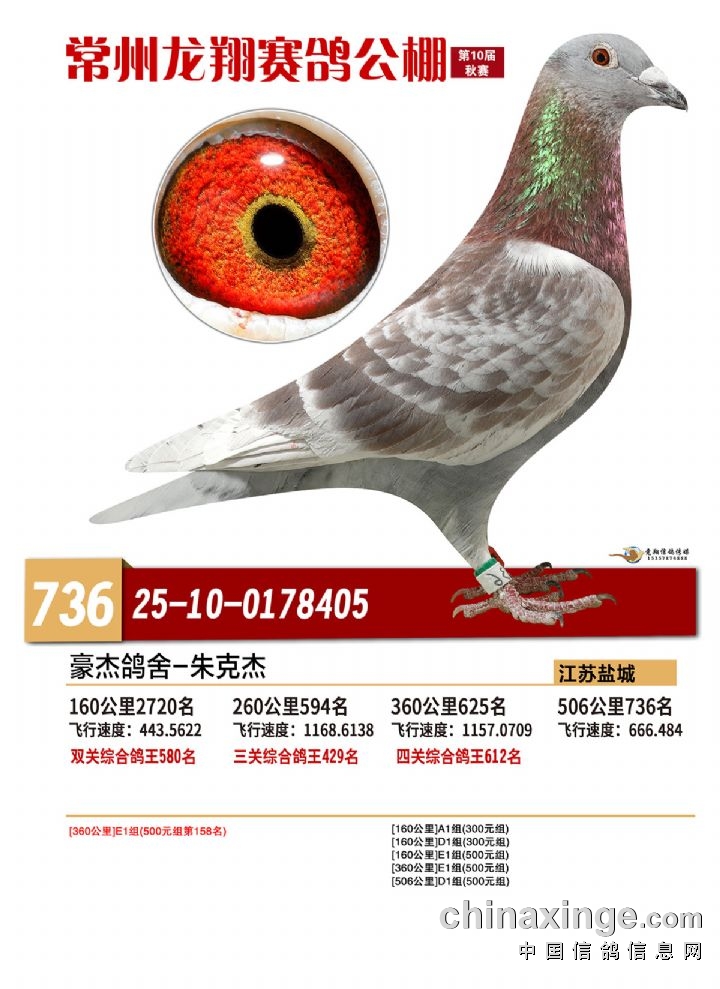 常州龙翔:2025年决赛获奖鸽靓照 736-740名