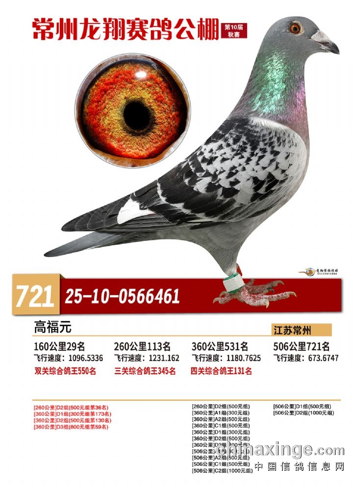 常州龙翔:2025年决赛获奖鸽靓照 721-725名