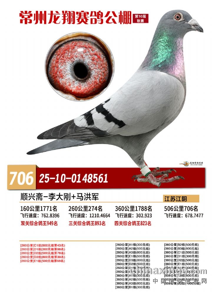 常州龙翔:2025年决赛获奖鸽靓照 706-710名