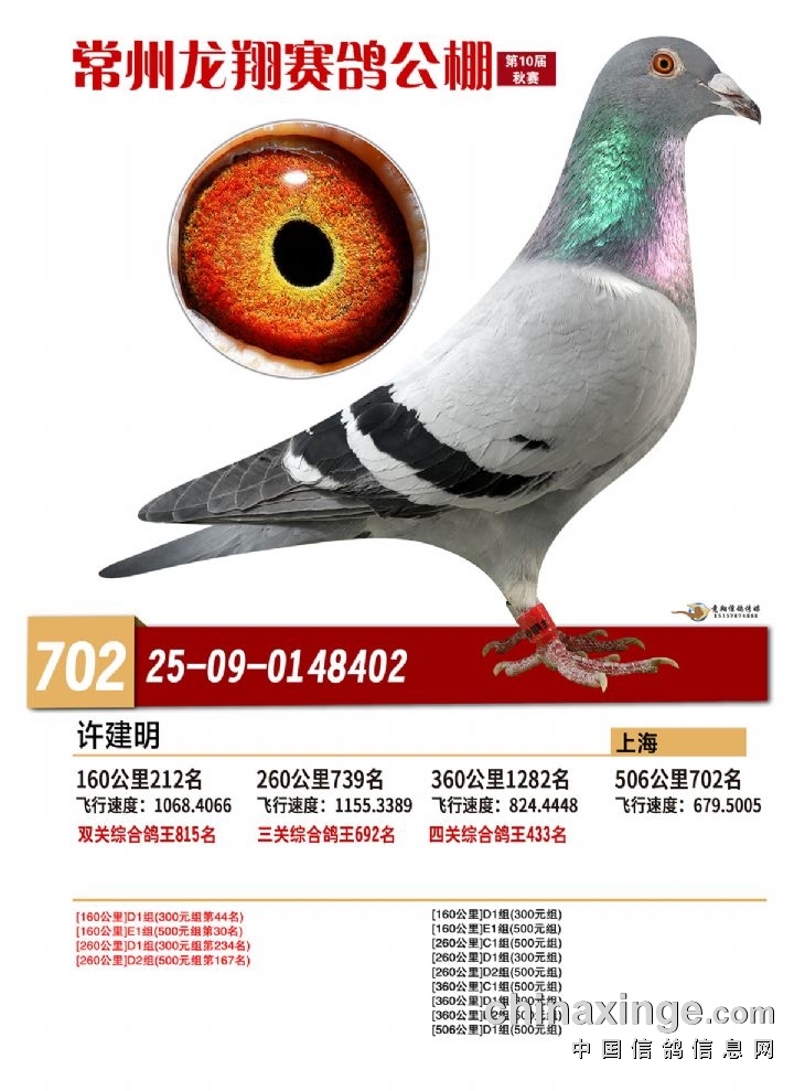 常州龙翔:2025年决赛获奖鸽靓照 701-705名