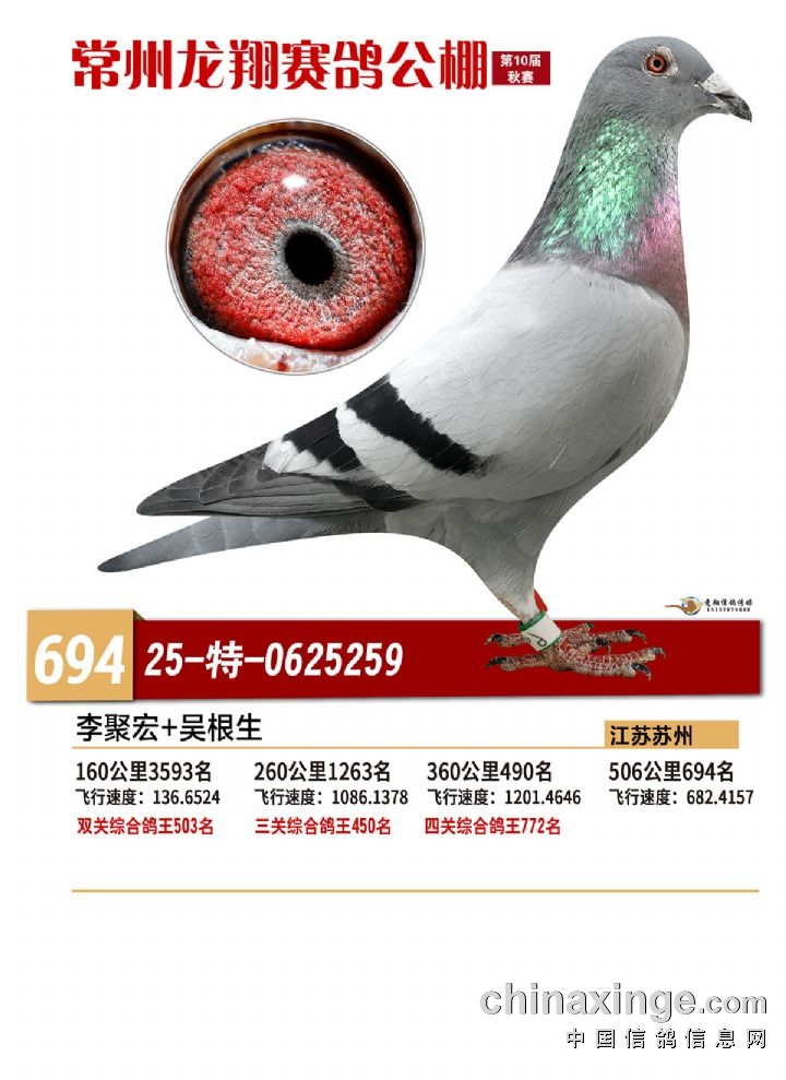常州龙翔:2025年决赛获奖鸽靓照 691-695名