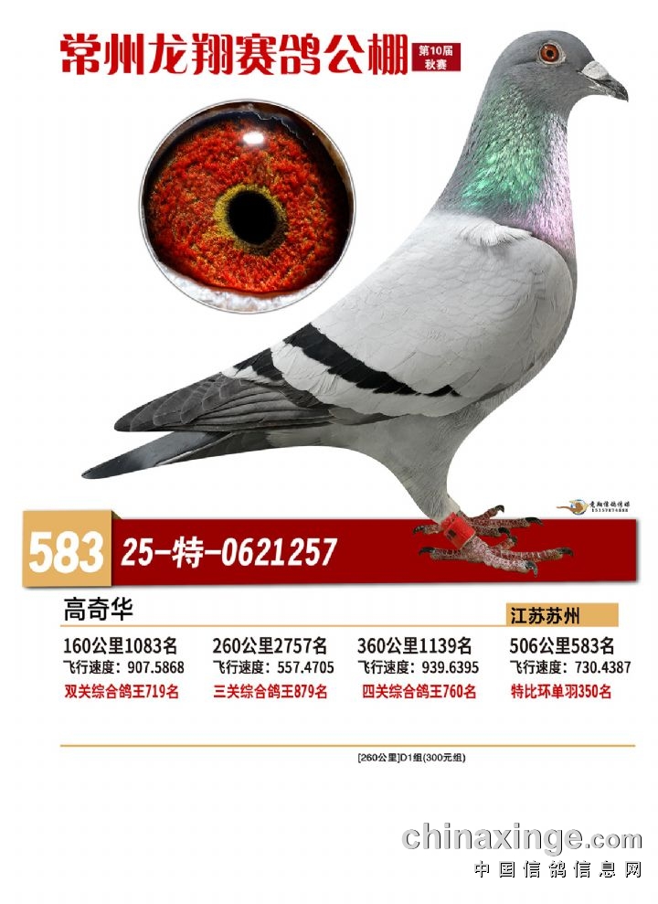 常州龙翔:2025年决赛获奖鸽靓照 581-585名