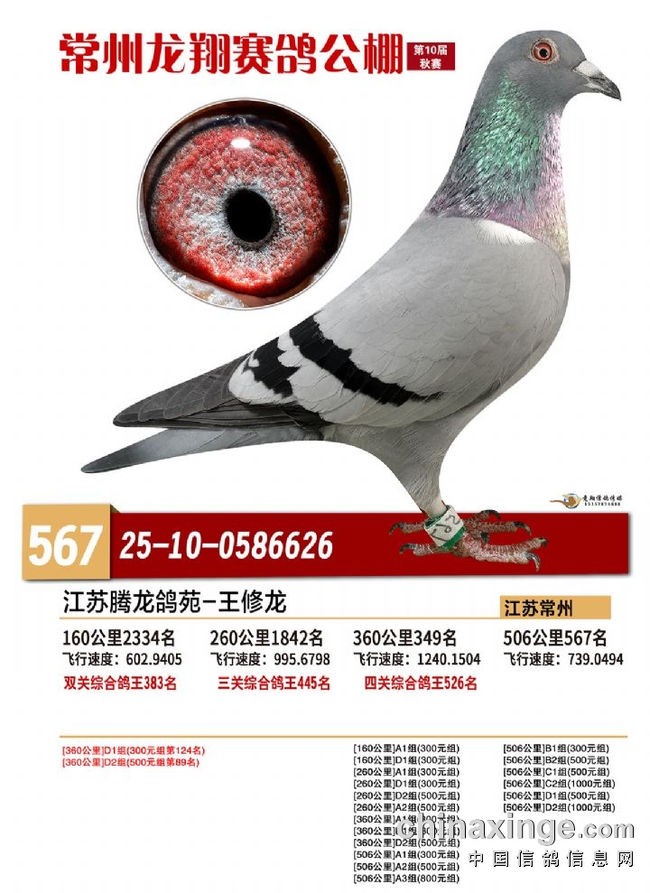 常州龙翔:2025年决赛获奖鸽靓照 566-570名