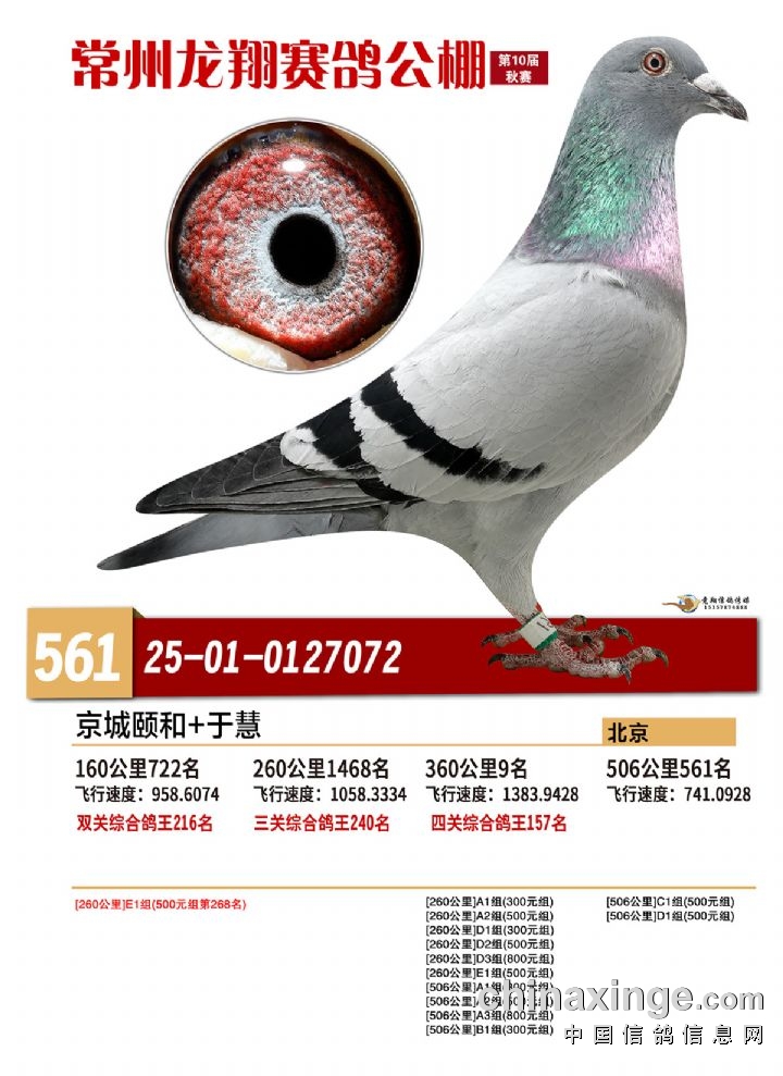 常州龙翔:2025年决赛获奖鸽靓照 561-565名