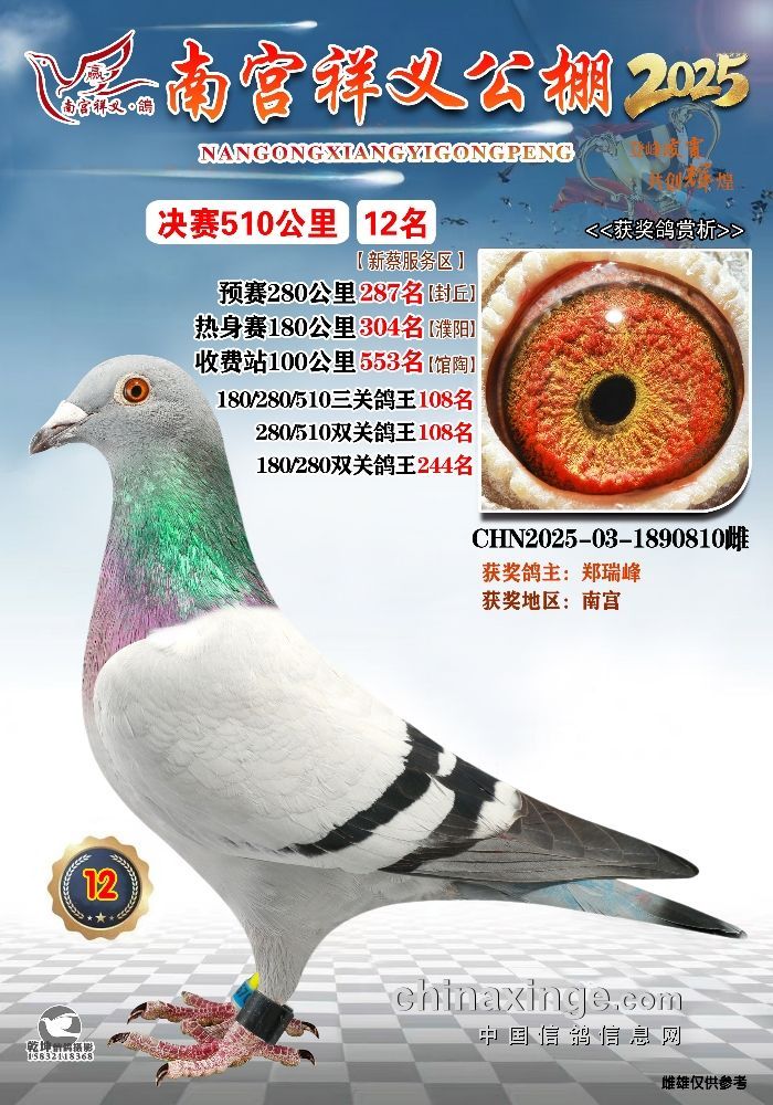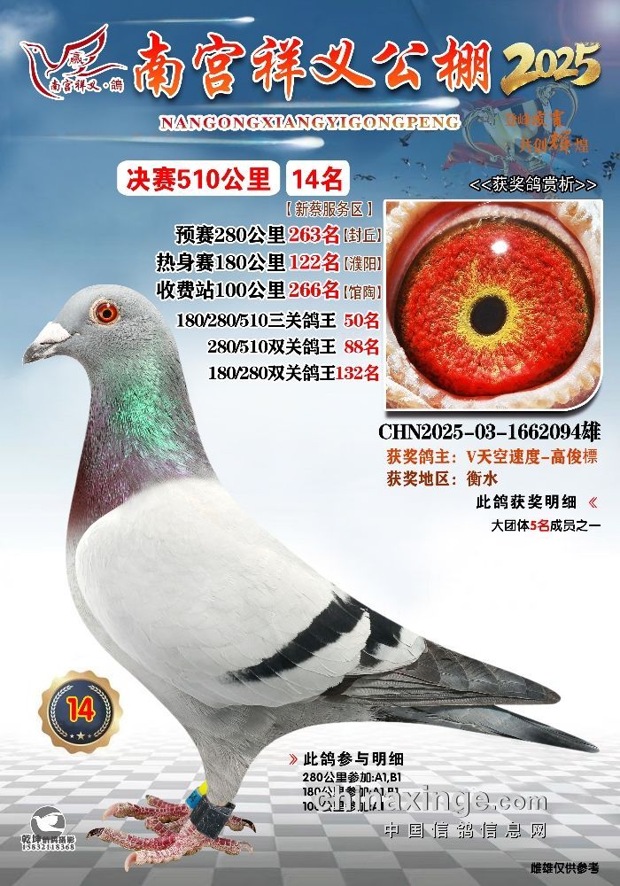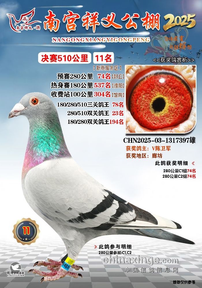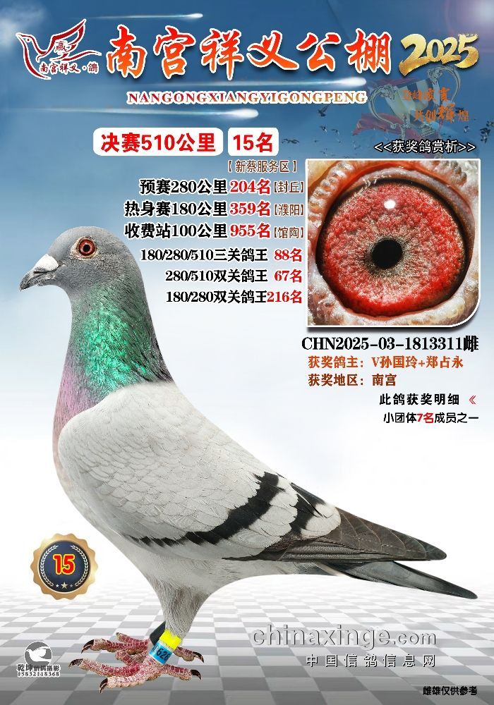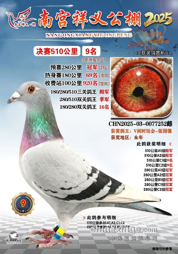 2025年南宫祥义公棚获奖鸽冠军-15名