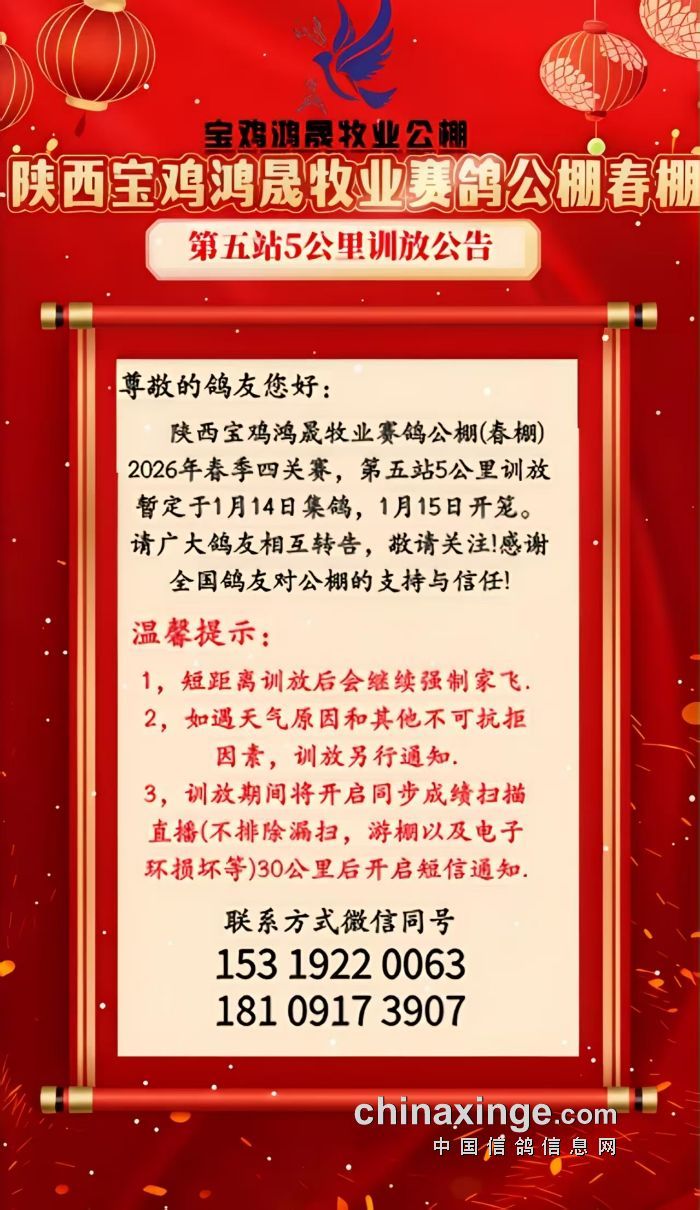 100公里清棚站开笼公告