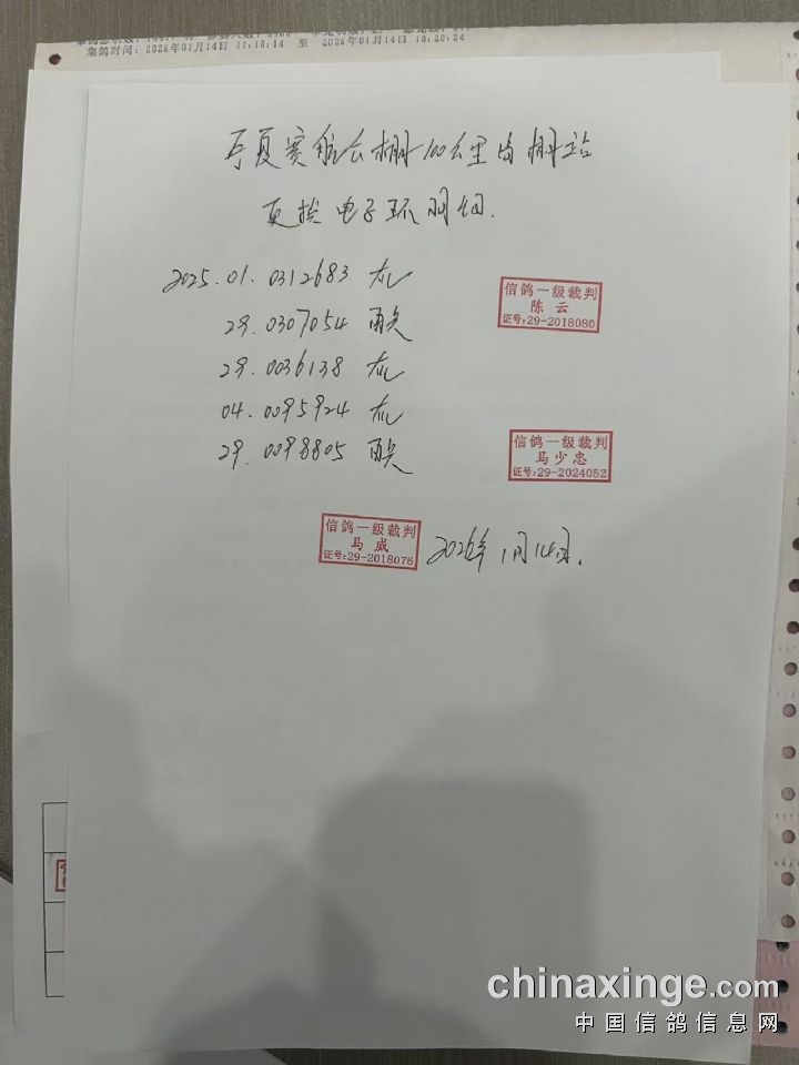 宁夏赛航赛鸽公棚更换电子环名单