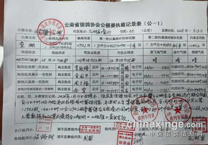 2026年云南爨乡赛鸽中心春棚:查棚执裁文件