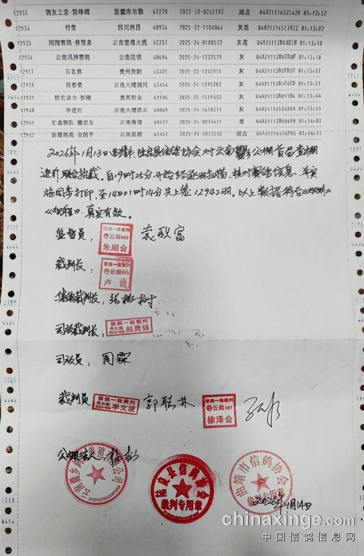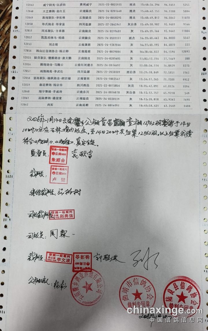 2026年爨乡公棚: 决赛上笼鸽均分清单