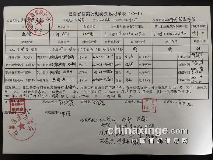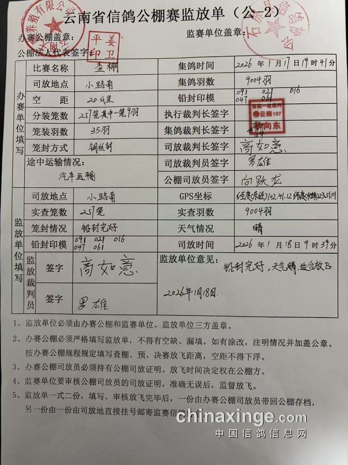 云南天顺赛鸽中心360公里决赛“自愿追加赛”再次核对公告
