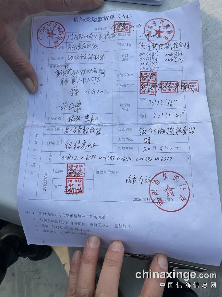 广东永环宇春棚第一关177公里热身赛放飞/现场图文报道1