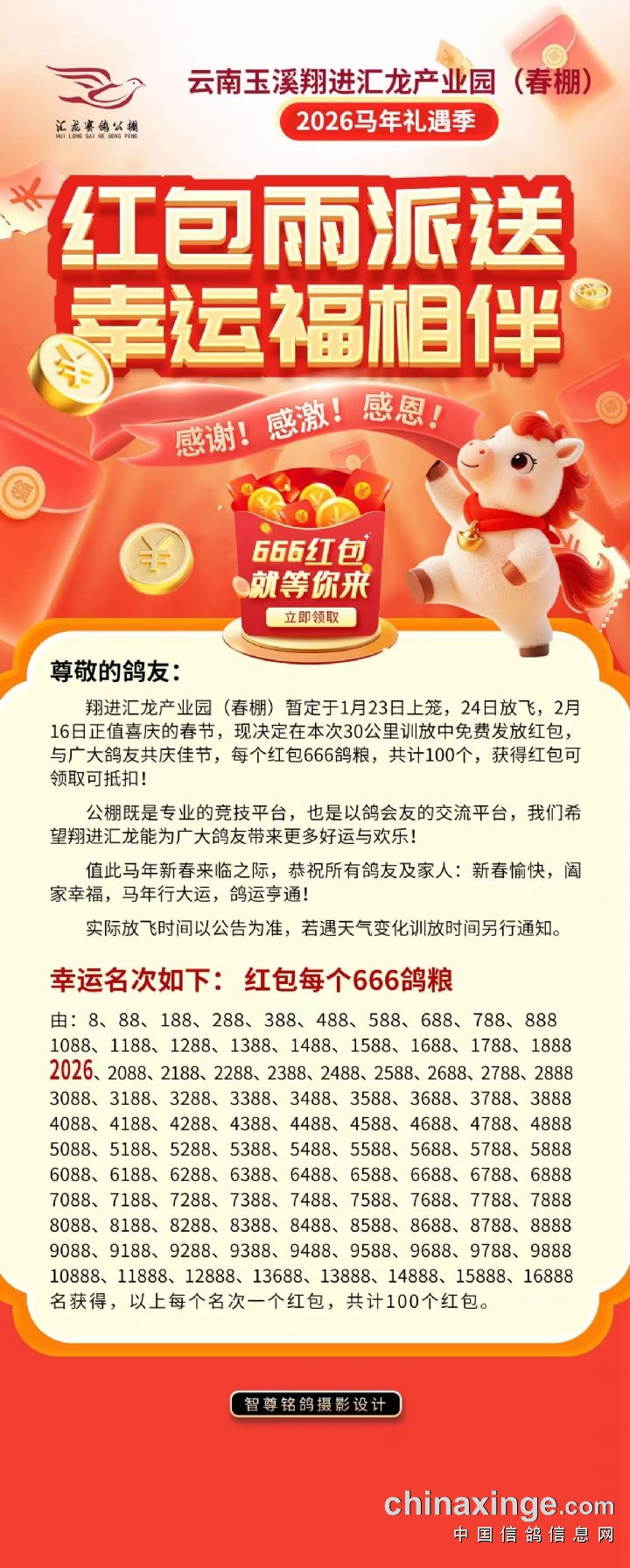 翔进汇龙春棚:301名至1627名进奖鸽参加加站赛核对通知