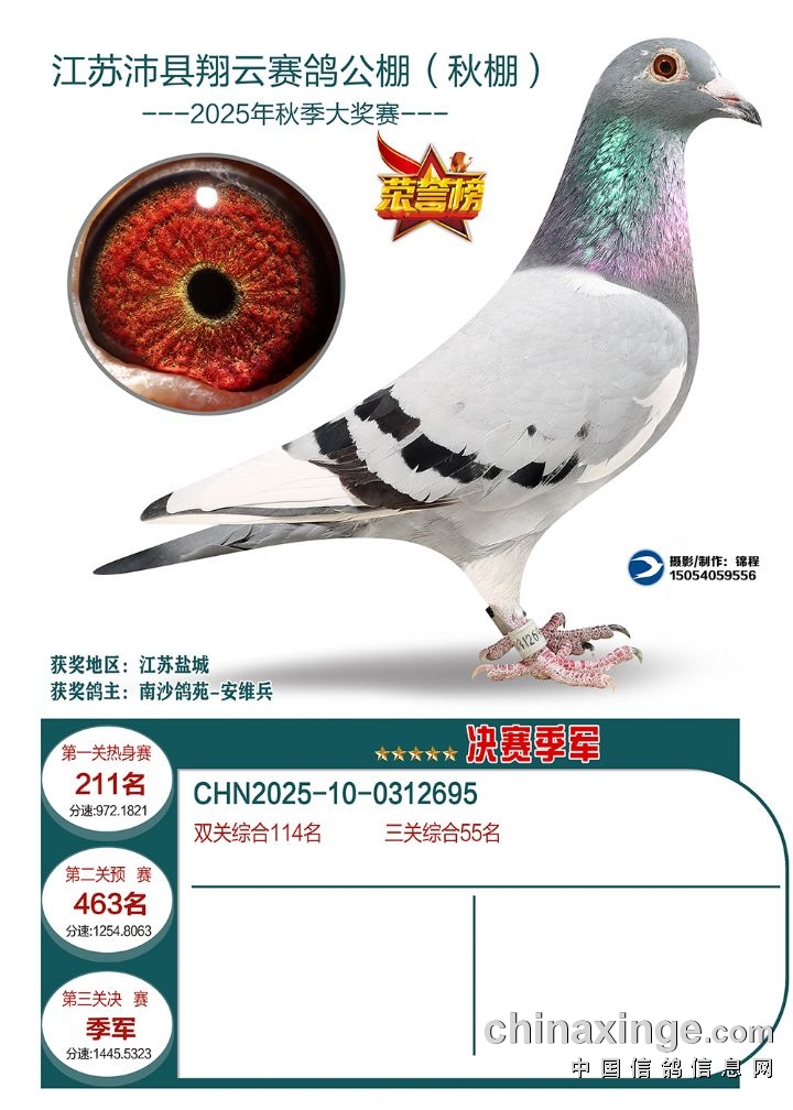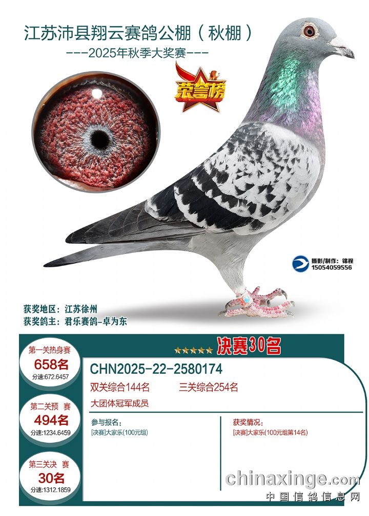江苏翔云赛鸽决赛获奖鸽1-30名