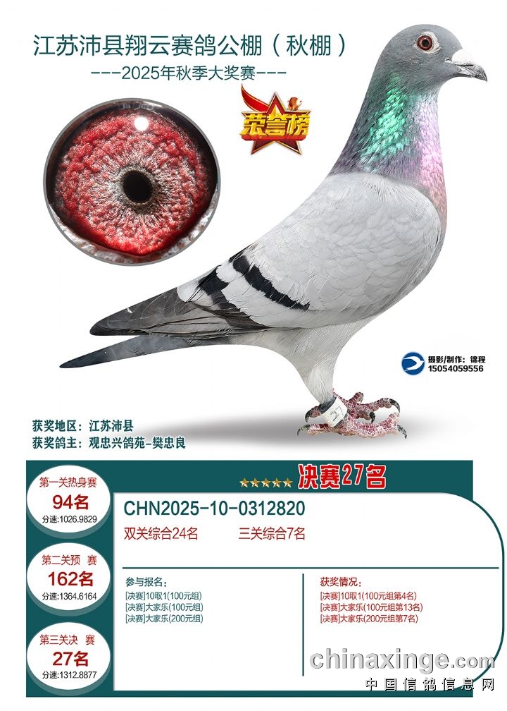 江苏翔云赛鸽加站赛获奖鸽1-28名