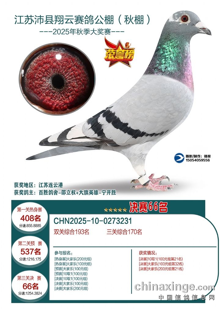 江苏翔云赛鸽决赛获奖鸽1-30名
