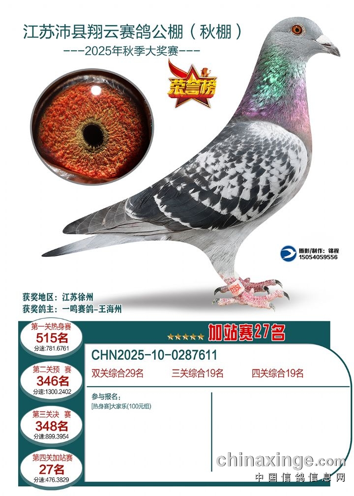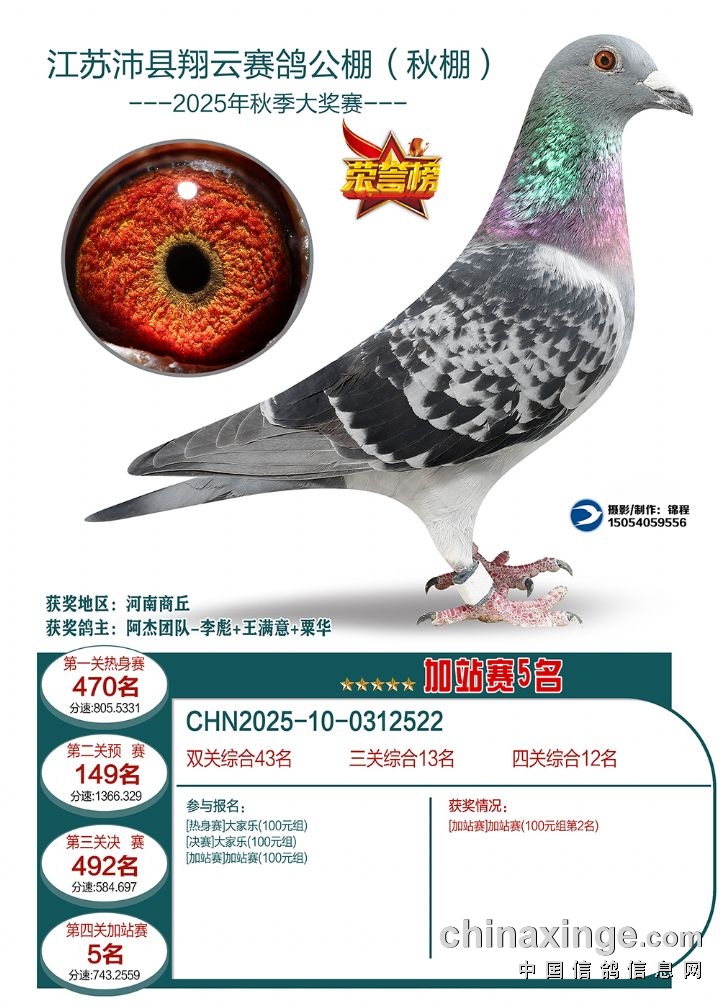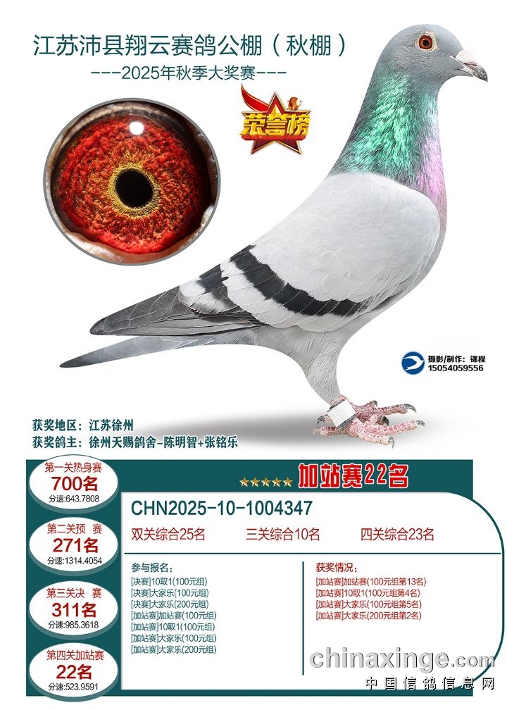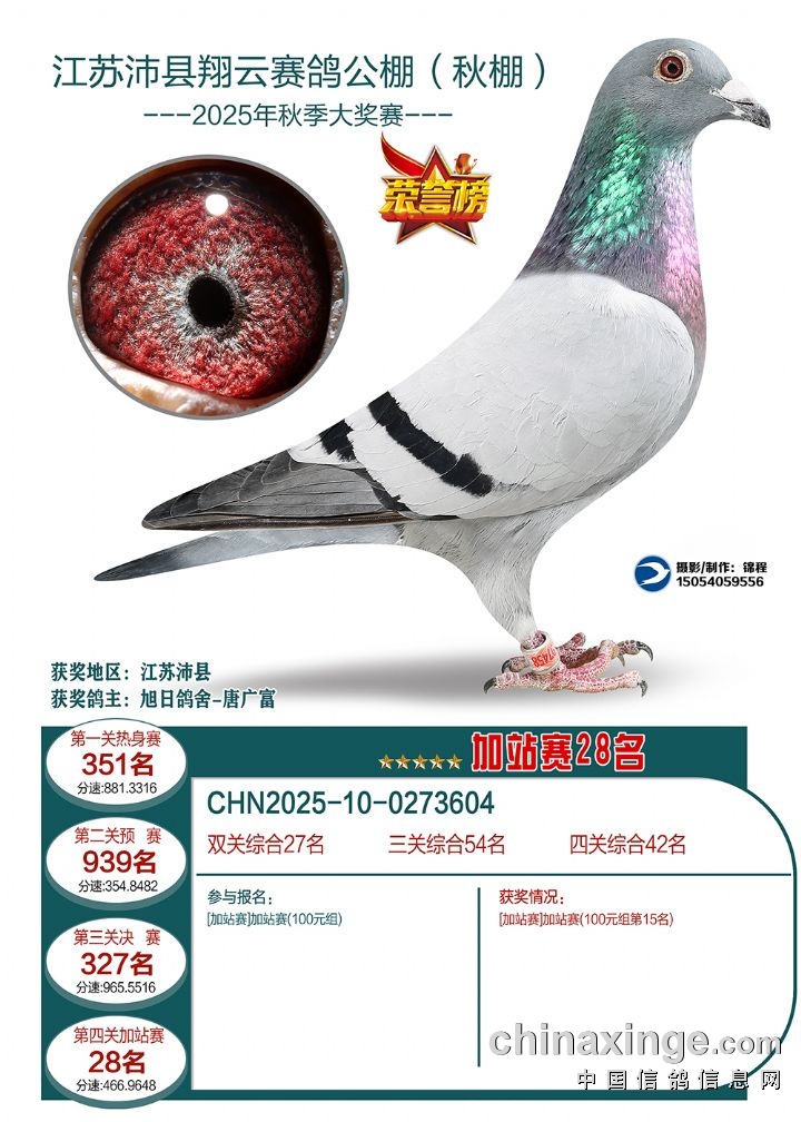 江苏翔云赛鸽加站赛获奖鸽1-28名