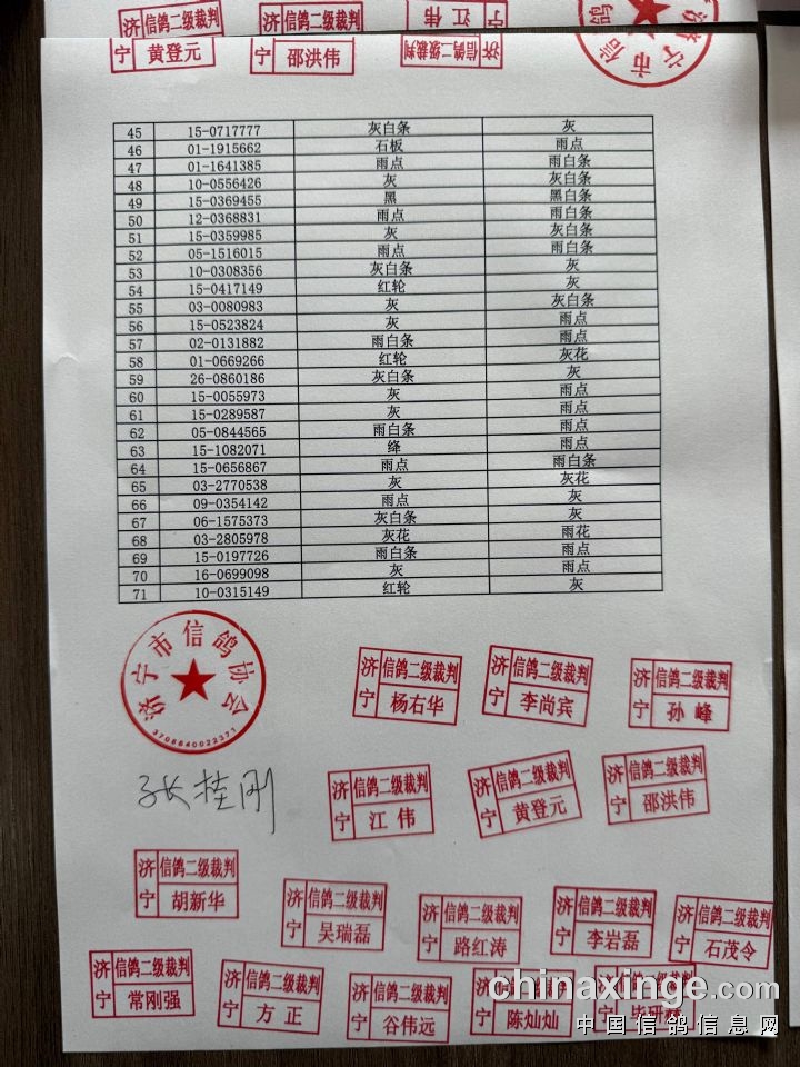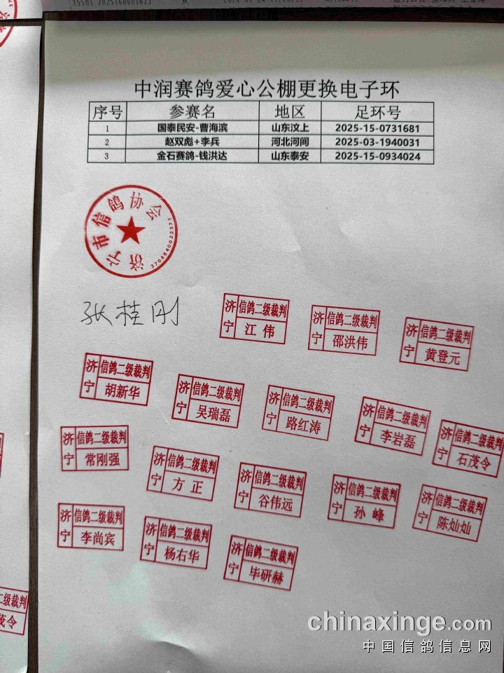 中润赛鸽爱心公棚(春棚)收费站集鸽清单(按会员)