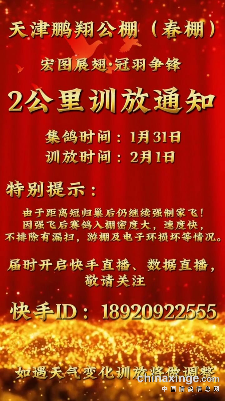 天津鹏翔春棚第一站2公里训放通知