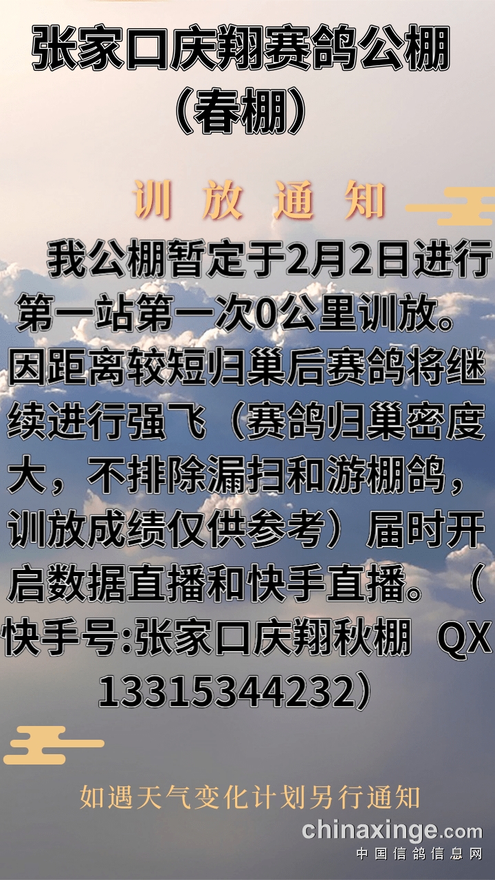 张家口庆翔公棚(春棚)500公里决赛比赛通知