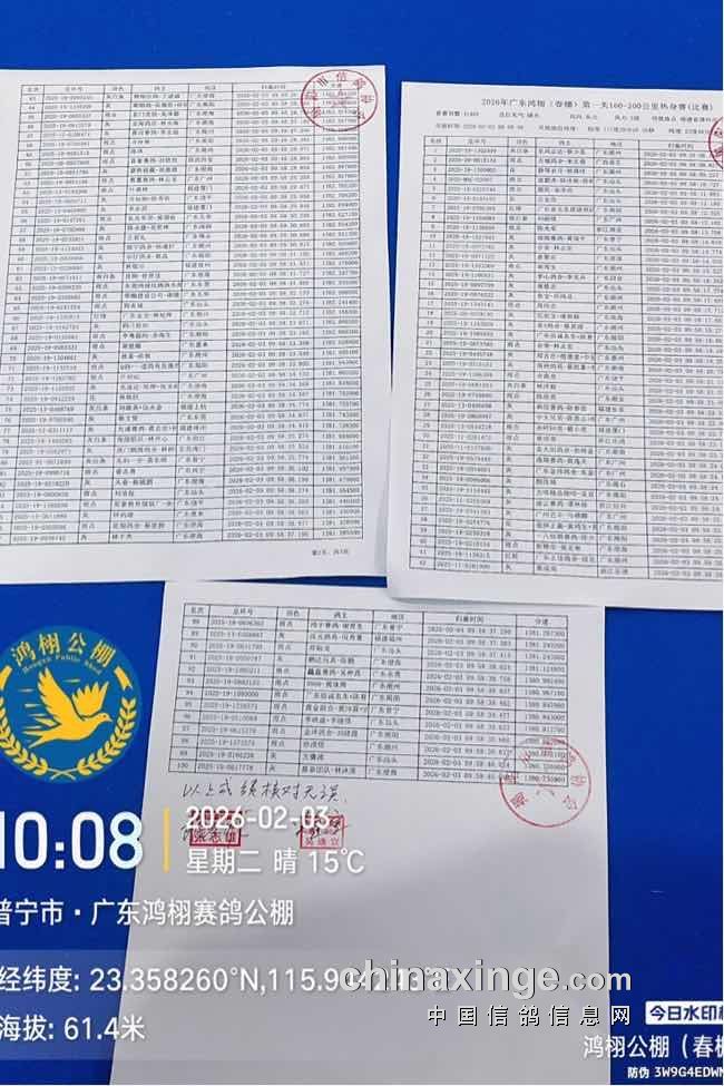 广东鸿栩(春棚)2026年首届春赛附加赛单羽常规赛有效名单(开笼起至当天19:00分为有效报道期)