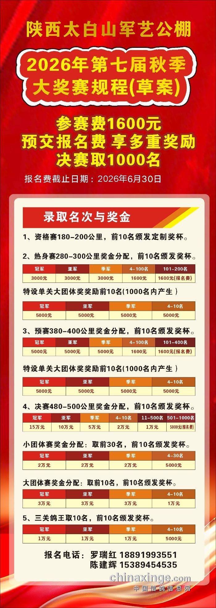 陕西太白山军艺公棚2026年第七届秋季大奖赛规程(草案)简版