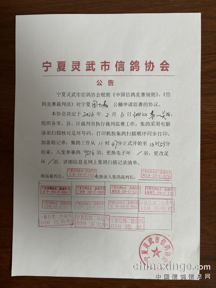 宁夏灵武市信鸽协会公告