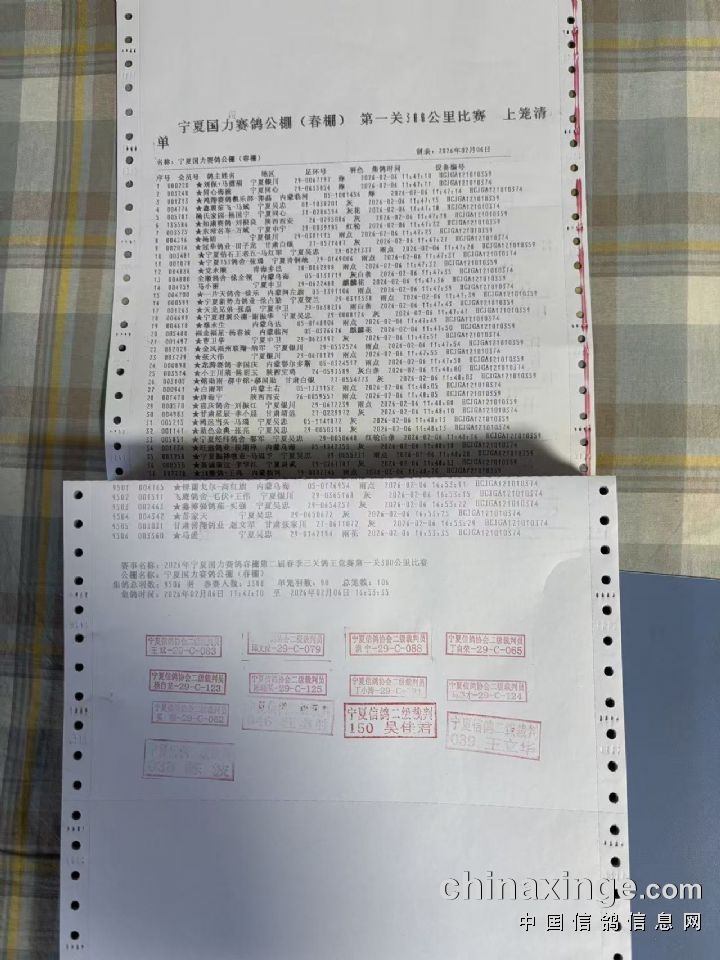 宁夏国力(春):850公里挑战赛集鸽明细(按顺序)