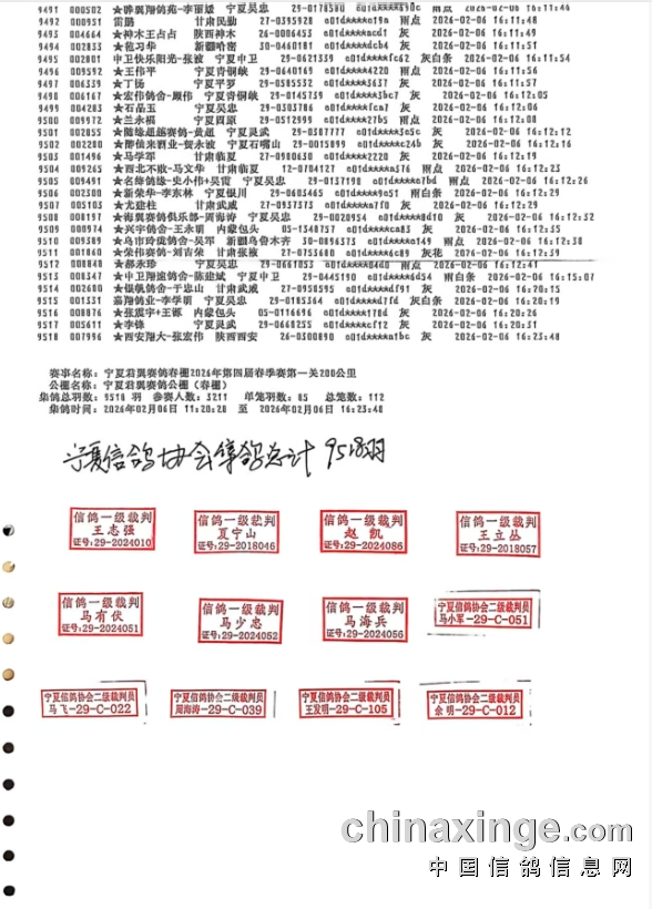 宁夏君翼赛鸽公棚(春棚)850公里挑战赛成绩直播
