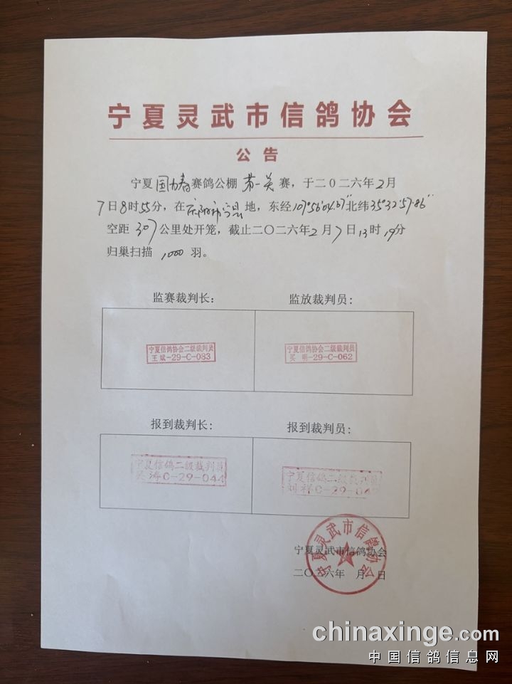 宁夏灵武市信鸽协会公告