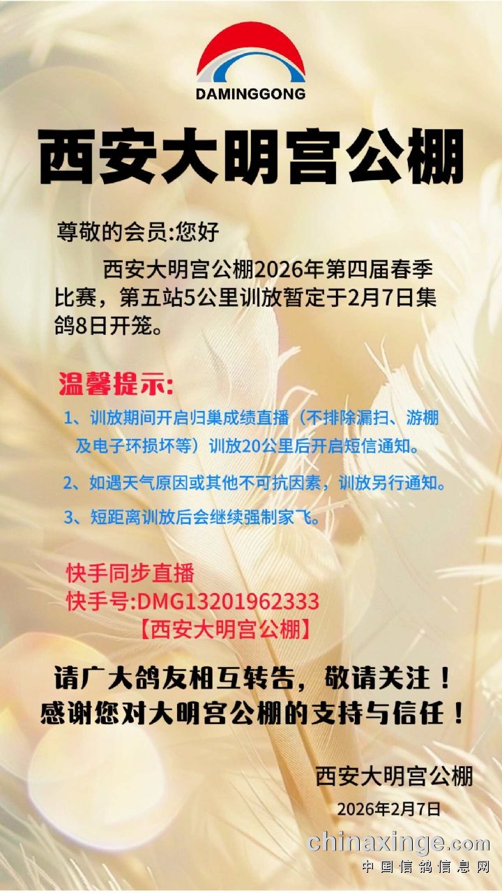 西安大明宫公棚-3月26日赛鸽强飞