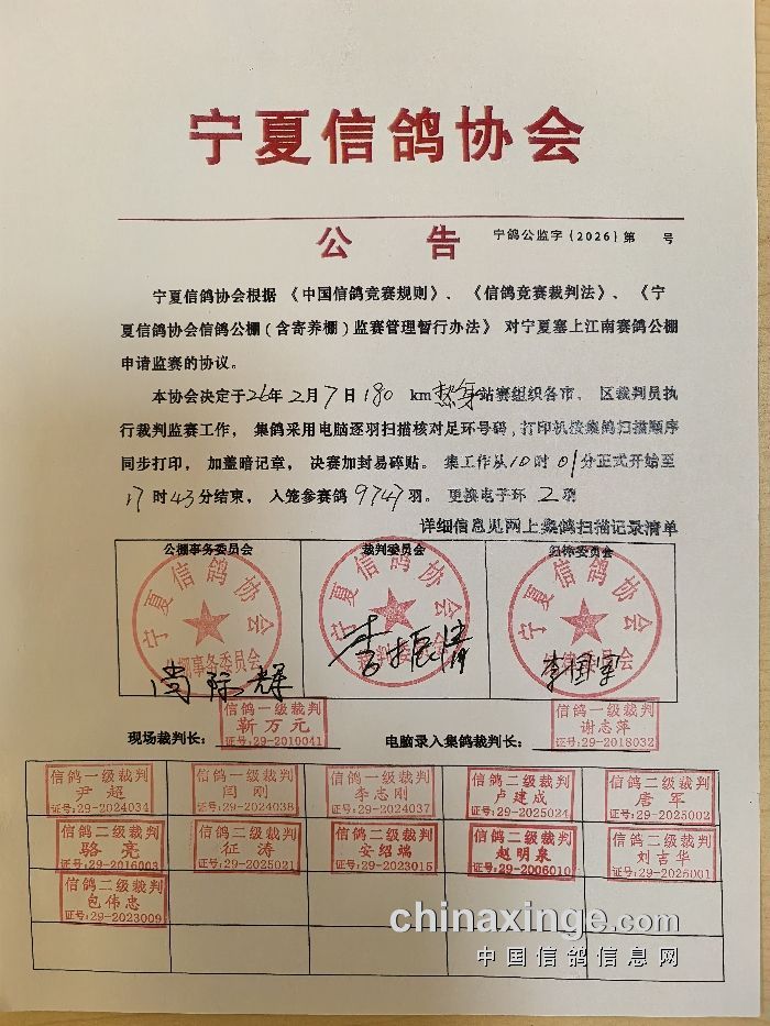 宁夏信鸽协会公告