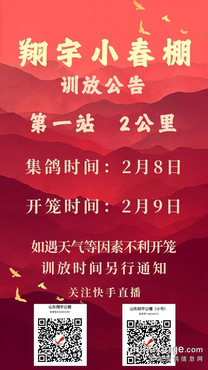 山东翔宇春棚(小棚)100公里收费站训放开笼公告及数据直播链接