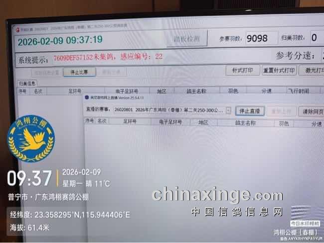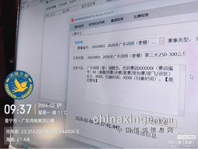 广东鸿栩(春棚)2026年首届春季四关赛250-300公里第二关速度赛图集(归巢地)