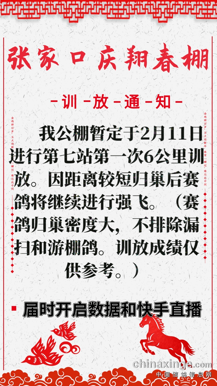 张家口庆翔公棚(春棚)第七站第一次6公里训放通知